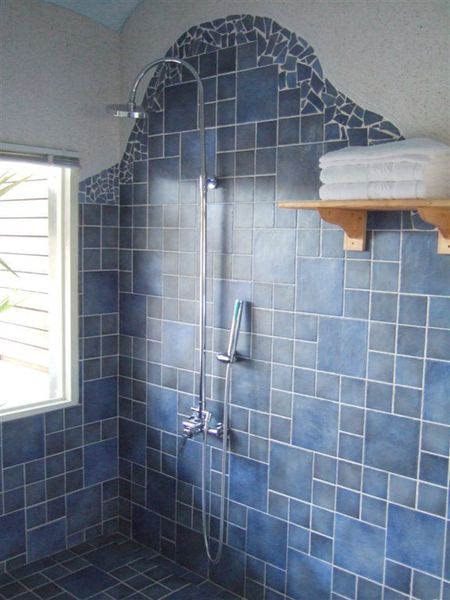 玻璃窗的另一邊是浴室耶